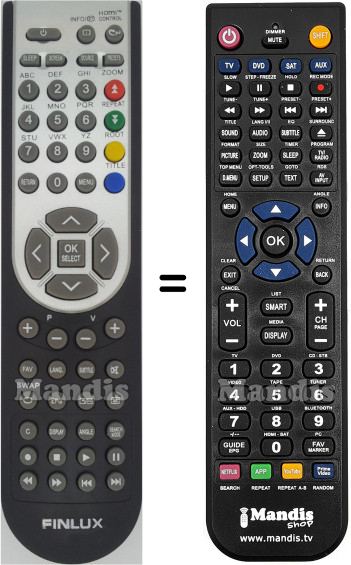 Below, we will show you the correspondence between each button on the original remote control and the button that performs the same function on the replacement remote control. In some cases, you may need to press the SHIFT key before pressing another button to perform certain actions. These additional functions are often not widely used and are included to facilitate understanding of the replacement remote control, or because the original remote control has more buttons than its equivalent.