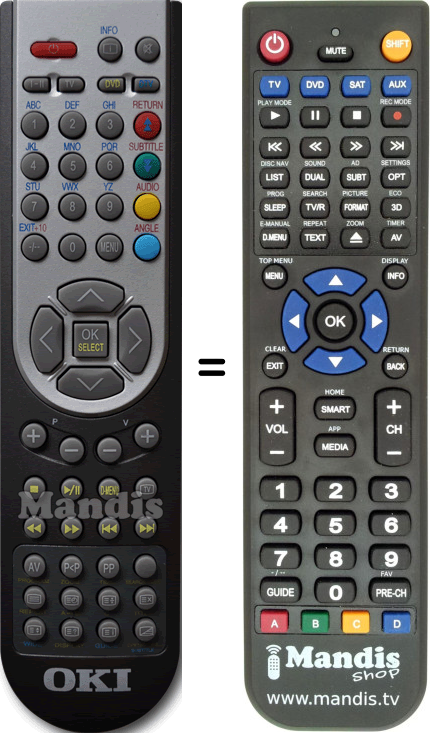 This remote control fully replaces your RC1165 (OKIRC1165) and offers all the functions of the original.