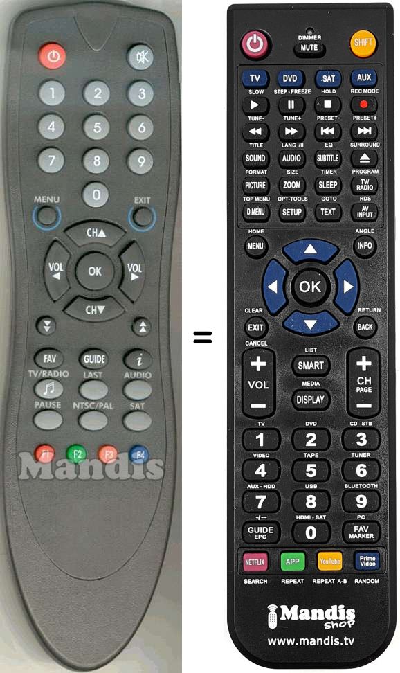 Remote control to replace the original DVB3001R and all its functions.