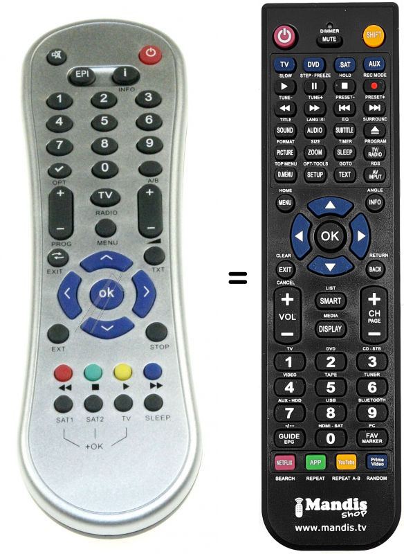 Remote control to replace the original and all its functions.