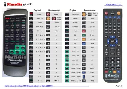 This remote control replaces most of the functions of your N2QAGB000011. It is not a universal remote control, but a copy with most of the buttons and functions of your original.