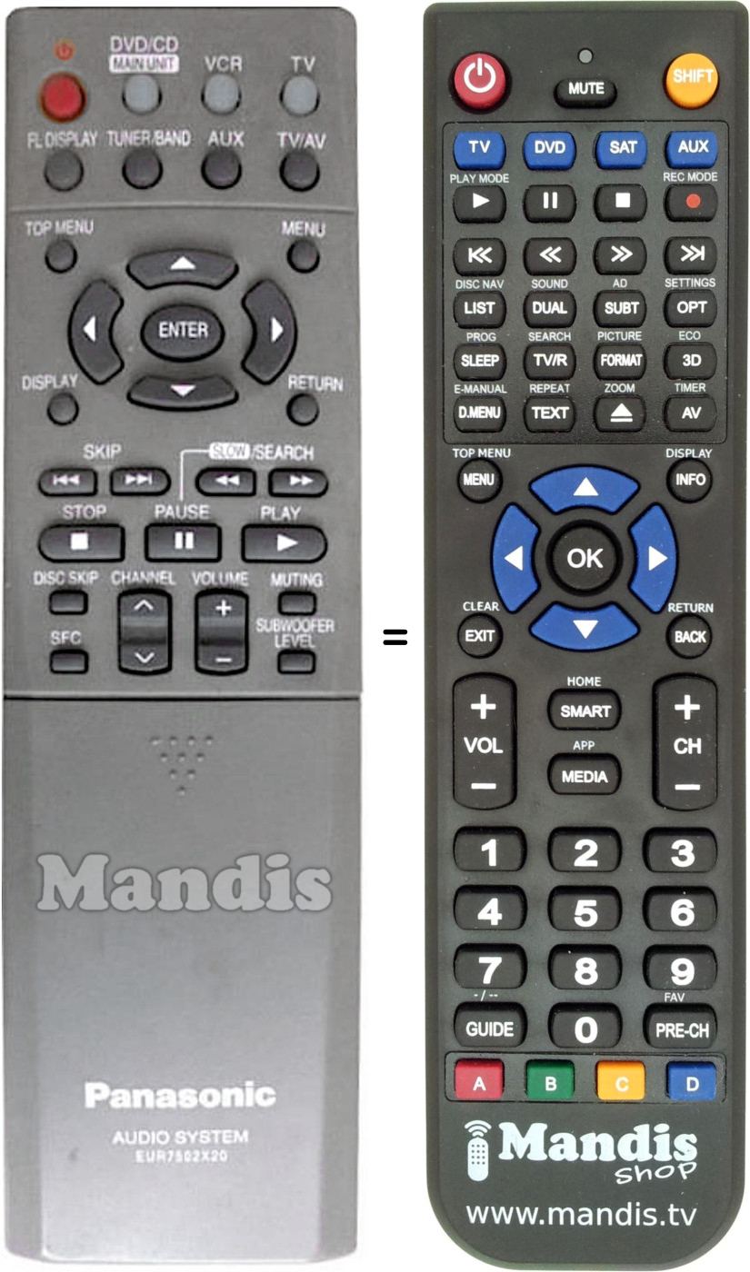 This remote control fully replaces your EUR7502X20 and offers all the functions of the original.