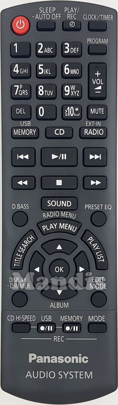 Original remote control N2QAYB000637 used for Music systems for the brand Panasonic.
