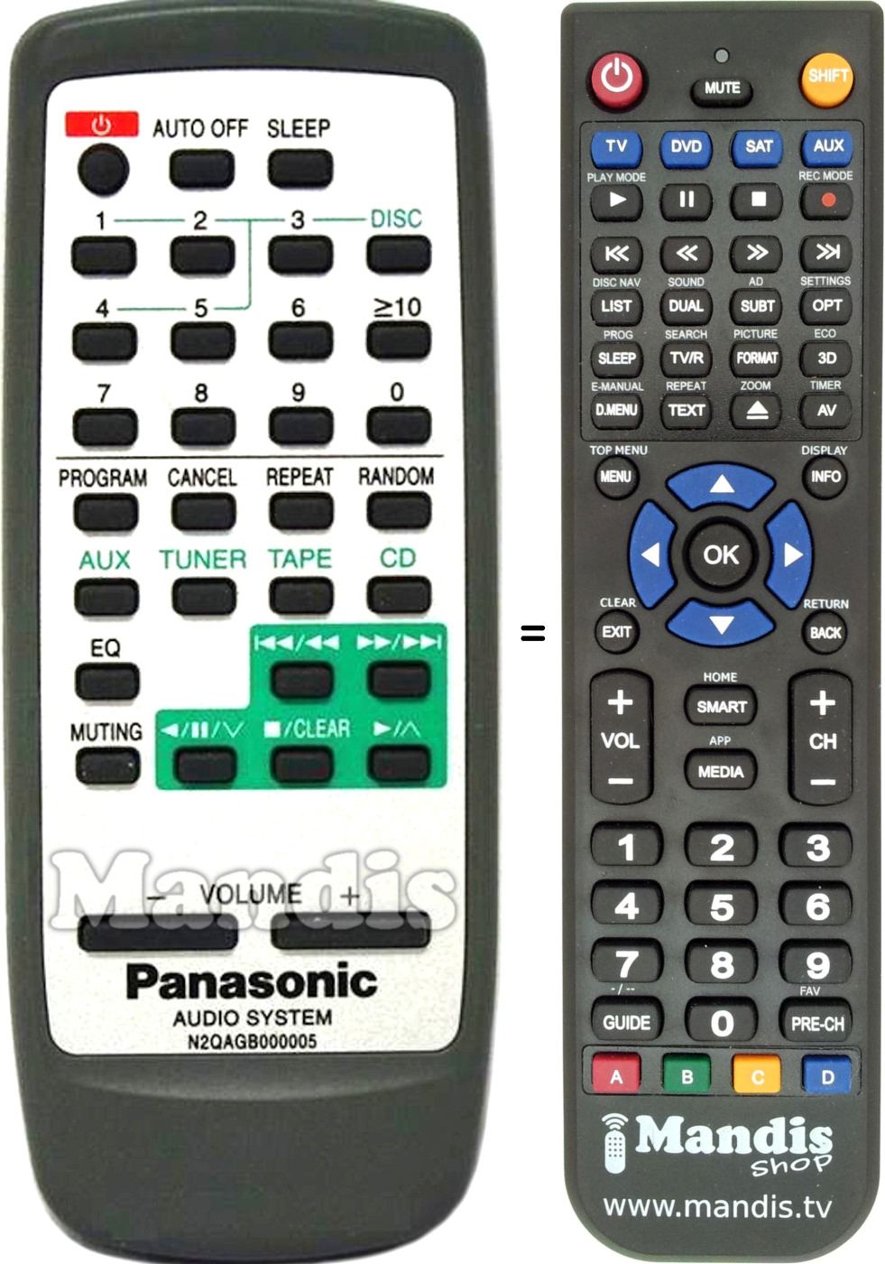 Replacement remote control N2QAYB000953Replacement remote control N2QAYB000953Available in stock22.73 € (VAT included)PanasonicReplacement remote control Panasonic EUR7659YM0Replacement remote control Panasonic EUR7659YM0Available in stock22.73 € (VAT included)PanasonicFor DMREX75EG, DMREX85EG, DMRE-X 75, DMRE-X 85 EB, DMRE-X75, DMR-EX75EGSReplacement remote control N2QAYB000255Replacement remote control N2QAYB000255Available in stock22.73 € (VAT included)PanasonicReplacement remote control Panasonic EUR7628010Replacement remote control Panasonic EUR7628010Available in stock22.73 € (VAT included)PanasonicFor TX-29 AL 10 C, EUR7628010, TX-28XD90F, TX-29 PS 11 D / B, TX-29 PS 2 D, TX-32 PM 11 D, TX-32 PS 11 D, TX-32PS11F, ...Replacement remote control Panasonic N2QAJB000091Replacement remote control Panasonic N2QAJB000091Available in stock22.73 € (VAT included)PanasonicFor DVDS24EB, DVDS24EG, DVDS27PL, DVD-S 27, N2QAJB000091, DVD S-27, DVD-S27EGReplacement remote control Panasonic EUR7631010Replacement remote control Panasonic EUR7631010Available in stock22.73 € (VAT included)PanasonicFor DVDS47, DVDS47EG, DVDS47EReplacement remote control EUR646552Replacement remote control EUR646552Available in stock22.73 € (VAT included)PanasonicReplacement remote control Panasonic N2QAYA000009Replacement remote control Panasonic N2QAYA000009Available in stock22.73 € (VAT included)PanasonicFor RX-D50EG, RX-D50AEG-S, RX-D50EBReplacement remote control N2QAYB000215Replacement remote control N2QAYB000215Available in stock22.73 € (VAT included)PanasonicReplacement remote control Panasonic TZZ00000007AReplacement remote control Panasonic TZZ00000007AAvailable in stock22.73 € (VAT included)PanasonicFor 16CT341500S, TZZ00000007A, TZZ 00000007 A, TX-L24X5B, TX-L24X5E, TX-LR32C5, TX-L24C5B, TX-L24C5ESReplacement remote control Panasonic EUR7710020Replacement remote control Panasonic EUR7710020Available in stock22.73 € (VAT included)PanasonicFor SCAK320, SCAK410E, SCAK520Replacement remote control Panasonic EUR511211Replacement remote control Panasonic EUR511211Available in stock22.73 € (VAT included)PanasonicFor TX-29AS10F, TX-32PL10F, EUR511211[DVD], EUR511211, EUR511272, TX-28LD20F, TX-28D60CS, TX-29AK20F, TX-32PK20F, TX-32 PK 25 D, ...Original remote control PANASONIC N2QAYB001215Original remote control PANASONIC N2QAYB001215Available in stock36.00 € (VAT included)PanasonicFor Soundbar SC-TMAX10E-K, SC-UA30E-K, SC-DM504EG-K, SC-TMAX9EG-K, SC-DM502E-K, SC-DM504EG-W, SC-TMAX50E-K, SC-DM502E-W, SC-TMAX40E-KOriginal remote control PANASONIC N2QAYC000064Original remote control PANASONIC N2QAYC000064Available in stock29.21 € (VAT included)PanasonicFor Soundbar SC-HTB20EGOriginal remote control PANASONIC N2QAYC000122Original remote control PANASONIC N2QAYC000122Available in stock34.50 € (VAT included)PanasonicOriginal remote control PANASONIC N2QAYC000126Original remote control PANASONIC N2QAYC000126Available in stock33.00 € (VAT included)PanasonicFor Soundbar SC-HTB254, SC-HTB254EGReplacement remote control N2QAGB000012Replacement remote control N2QAGB000012Available in stock22.73 € (VAT included)PanasonicReplacement remote control Panasonic N2QAYB000639Replacement remote control Panasonic N2QAYB000639Available in stock22.73 € (VAT included)PanasonicFor SCHC15EBReplacement remote control Panasonic N2QAGB000004Replacement remote control Panasonic N2QAGB000004Available in stock22.73 € (VAT included)PanasonicFor SAAK22Replacement remote control Panasonic N2QAGB000005Replacement remote control Panasonic N2QAGB000005Available in stock22.73 € (VAT included)PanasonicFor SAAK22