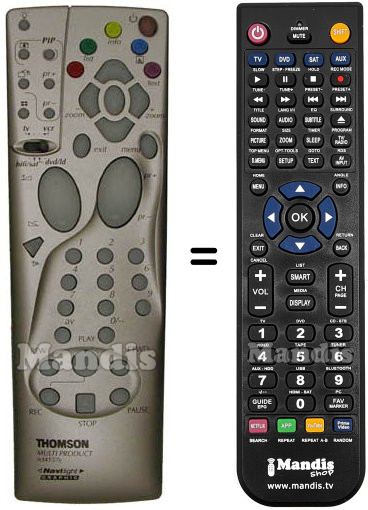 Below, we will show you the correspondence between each button on the original remote control and the button that performs the same function on the replacement remote control. In some cases, you may need to press the SHIFT key before pressing another button to perform certain actions. These additional functions are often not widely used and are included to facilitate understanding of the replacement remote control, or because the original remote control has more buttons than its equivalent.