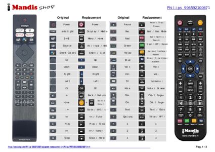 Below, we will show you the correspondence between each button on the original remote control and the button that performs the same function on the replacement remote control. In some cases, you may need to press the SHIFT key before pressing another button to perform certain actions. These additional functions are often not widely used and are included to facilitate understanding of the replacement remote control, or because the original remote control has more buttons than its equivalent.
