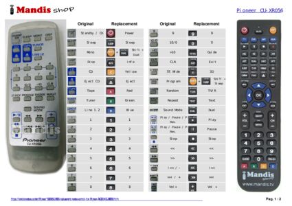 Attention: This remote control replaces most of the functions of your AXD7224 (CU-XR056), but not all. The main functions are included, but some secondary functions may not be available.