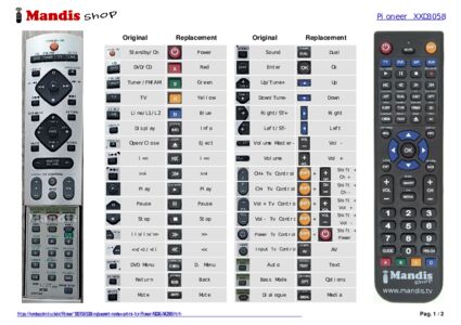 Below, we will show you the correspondence between each button on the original remote control and the button that performs the same function on the replacement remote control. In some cases, you may need to press the SHIFT key before pressing another button to perform certain actions. These additional functions are often not widely used and are included to facilitate understanding of the replacement remote control, or because the original remote control has more buttons than its equivalent.