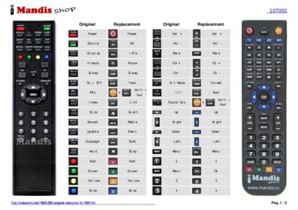 Below, we will show you the correspondence between each button on the original remote control and the button that performs the same function on the replacement remote control. In some cases, you may need to press the SHIFT key before pressing another button to perform certain actions. These additional functions are often not widely used and are included to facilitate understanding of the replacement remote control, or because the original remote control has more buttons than its equivalent.