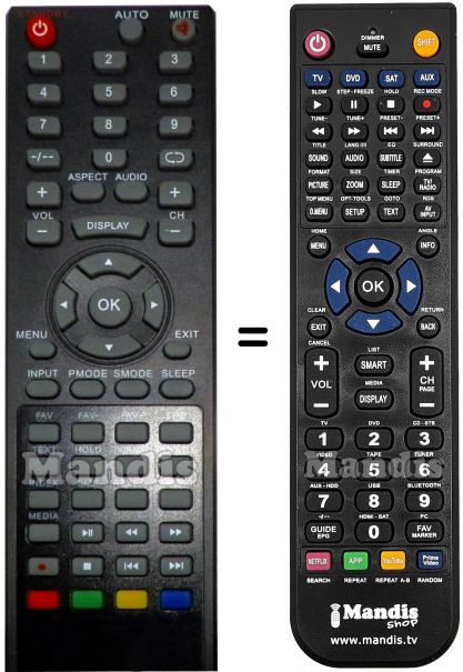 Below, we will show you the correspondence between each button on the original remote control and the button that performs the same function on the replacement remote control. In some cases, you may need to press the SHIFT key before pressing another button to perform certain actions. These additional functions are often not widely used and are included to facilitate understanding of the replacement remote control, or because the original remote control has more buttons than its equivalent.