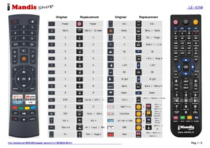 A document is included to help you use the new remote control easily, showing the button correspondence.