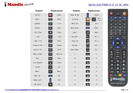 Questions on remote QUIGG ELECTRONICS B 15 HC 4909