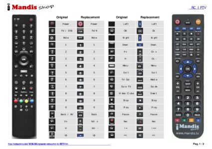 Below, we will show you the correspondence between each button on the original remote control and the button that performs the same function on the replacement remote control. In some cases, you may need to press the SHIFT key before pressing another button to perform certain actions. These additional functions are often not widely used and are included to facilitate understanding of the replacement remote control, or because the original remote control has more buttons than its equivalent.