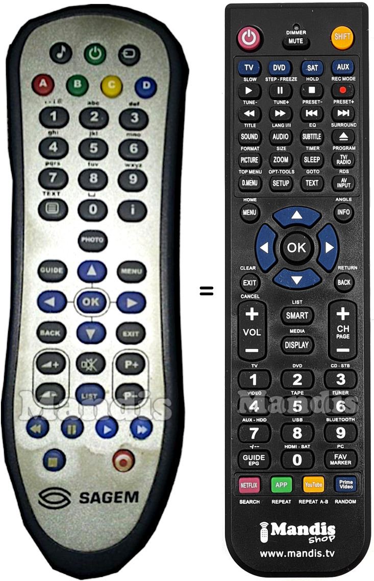 Home > Brands > Remote controls Sagem > Remote control for SAGEM PVR6280TFR