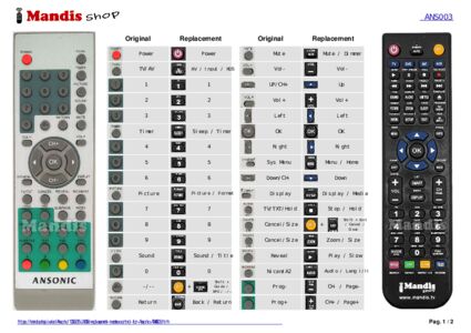 A document is included to help you use the new remote control easily, showing the button correspondence.