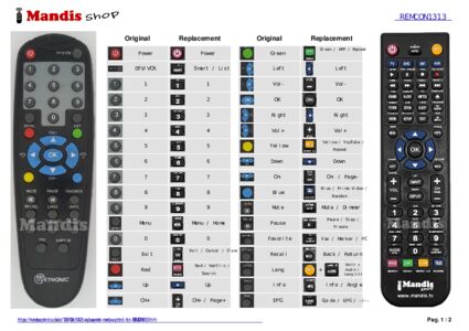Below, we will show you the correspondence between each button on the original remote control and the button that performs the same function on the replacement remote control. In some cases, you may need to press the SHIFT key before pressing another button to perform certain actions. These additional functions are often not widely used and are included to facilitate understanding of the replacement remote control, or because the original remote control has more buttons than its equivalent.