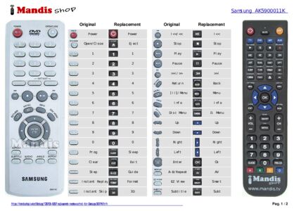 A document is included to help you use the new remote control easily, showing the button correspondence.