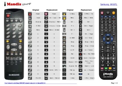 Below, we will show you the correspondence between each button on the original remote control and the button that performs the same function on the replacement remote control. In some cases, you may need to press the SHIFT key before pressing another button to perform certain actions. These additional functions are often not widely used and are included to facilitate understanding of the replacement remote control, or because the original remote control has more buttons than its equivalent.