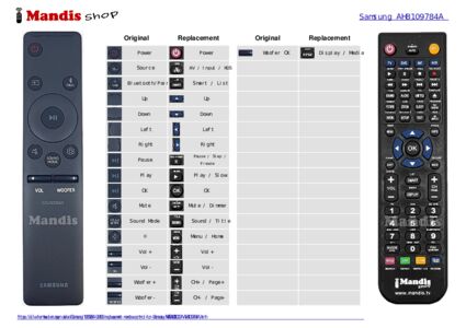A document is included to help you use the new remote control easily, showing the button correspondence.