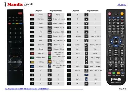 A document is included to help you use the new remote control easily, showing the button correspondence.