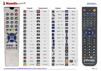 Below, we will show you the correspondence between each button on the original remote control and the button that performs the same function on the replacement remote control. In some cases, you may need to press the SHIFT key before pressing another button to perform certain actions. These additional functions are often not widely used and are included to facilitate understanding of the replacement remote control, or because the original remote control has more buttons than its equivalent.