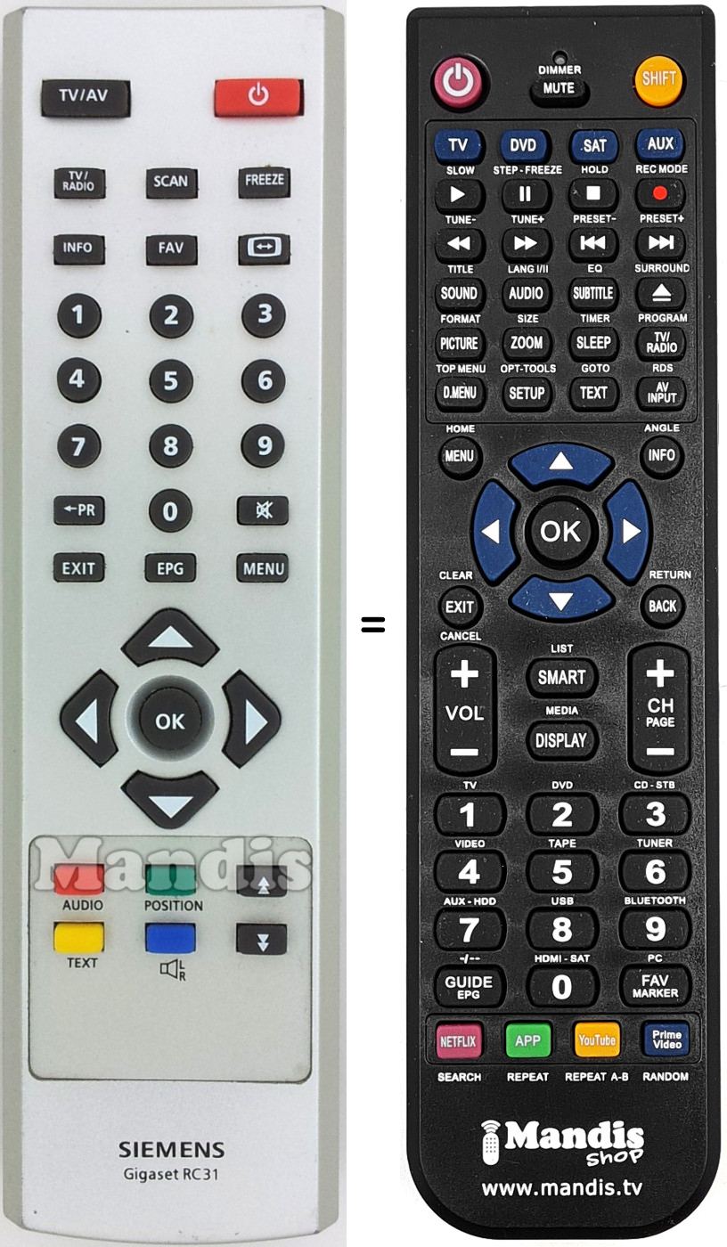 Remote control to replace the original and all its functions.