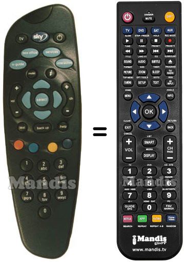Below, we will show you the correspondence between each button on the original remote control and the button that performs the same function on the replacement remote control. In some cases, you may need to press the SHIFT key before pressing another button to perform certain actions. These additional functions are often not widely used and are included to facilitate understanding of the replacement remote control, or because the original remote control has more buttons than its equivalent.
