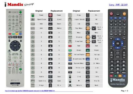 This remote control fully replaces your RMT-D234P (147965812) and offers all the functions of the original.