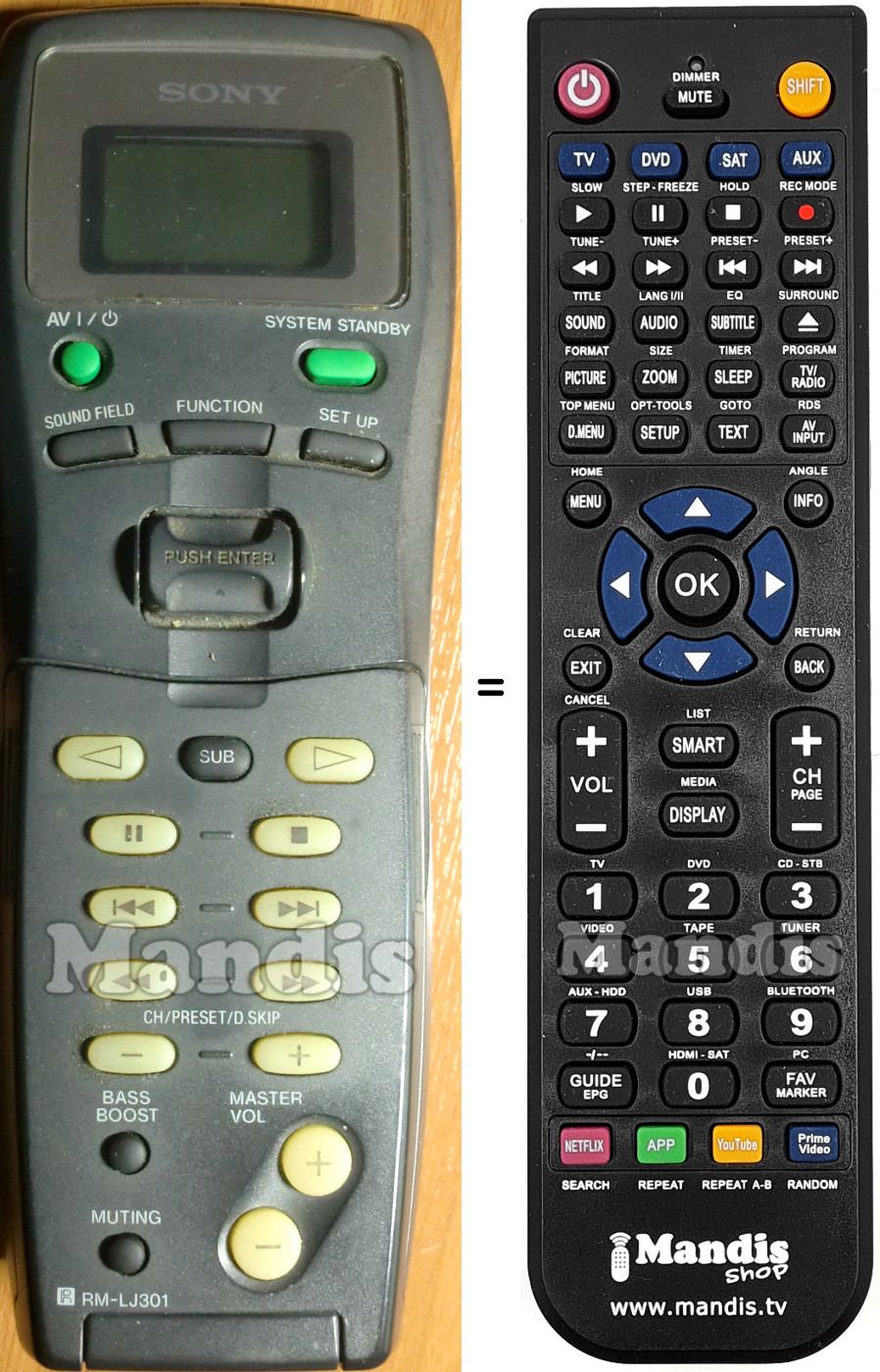 This remote control fully replaces your RM-LJ301 (147572611) and offers all the functions of the original.