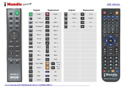 This remote control fully replaces your RMT-AH410U (149335811) and offers all the functions of the original.