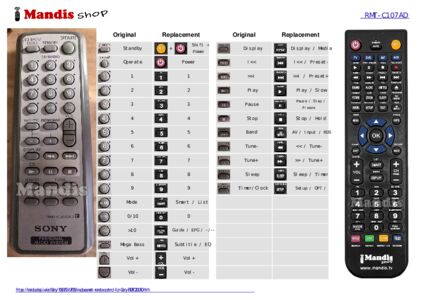 Below, we will show you the correspondence between each button on the original remote control and the button that performs the same function on the replacement remote control. In some cases, you may need to press the SHIFT key before pressing another button to perform certain actions. These additional functions are often not widely used and are included to facilitate understanding of the replacement remote control, or because the original remote control has more buttons than its equivalent.