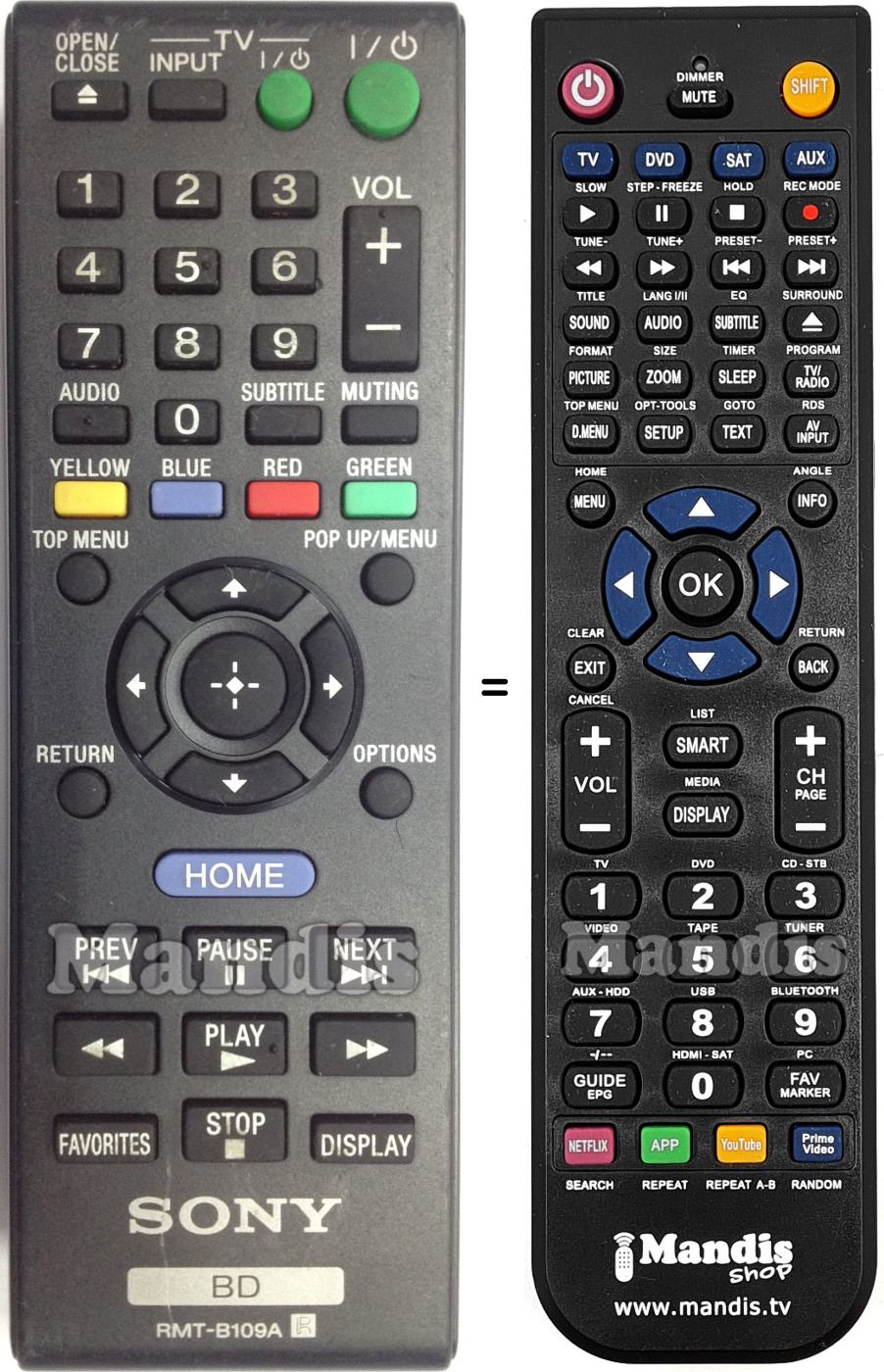 This remote control fully replaces your RMT-B109A (148939911) and offers all the functions of the original.