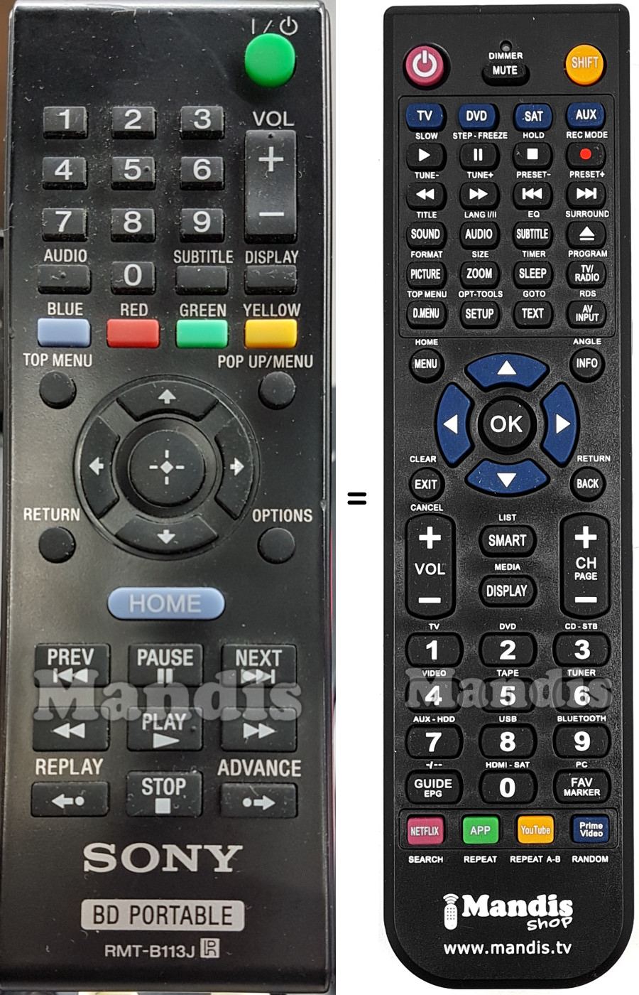 This remote control fully replaces your RMT-B113J and offers all the functions of the original.