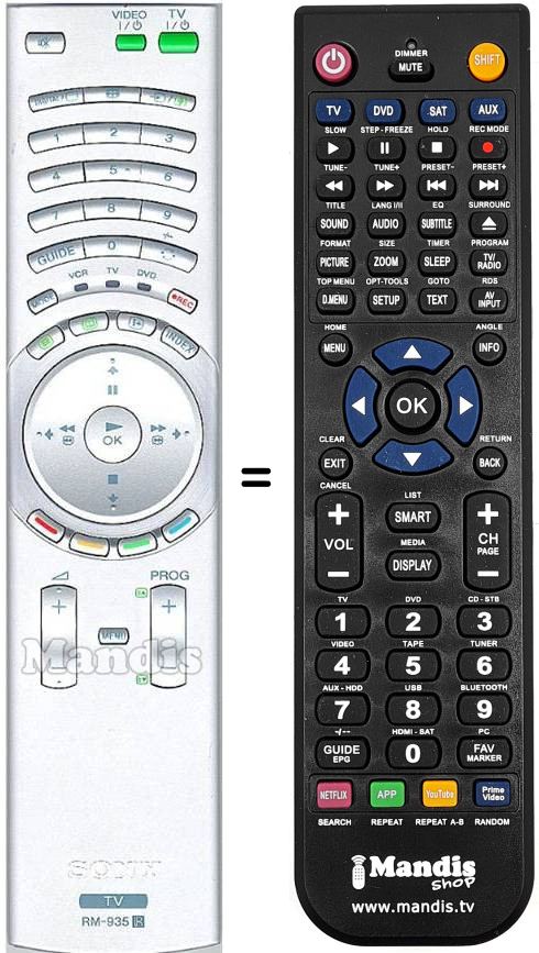 Remote control to replace the original RM935 (147680812) and all its functions.