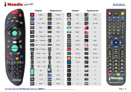 Below, we will show you the correspondence between each button on the original remote control and the button that performs the same function on the replacement remote control. In some cases, you may need to press the SHIFT key before pressing another button to perform certain actions. These additional functions are often not widely used and are included to facilitate understanding of the replacement remote control, or because the original remote control has more buttons than its equivalent.