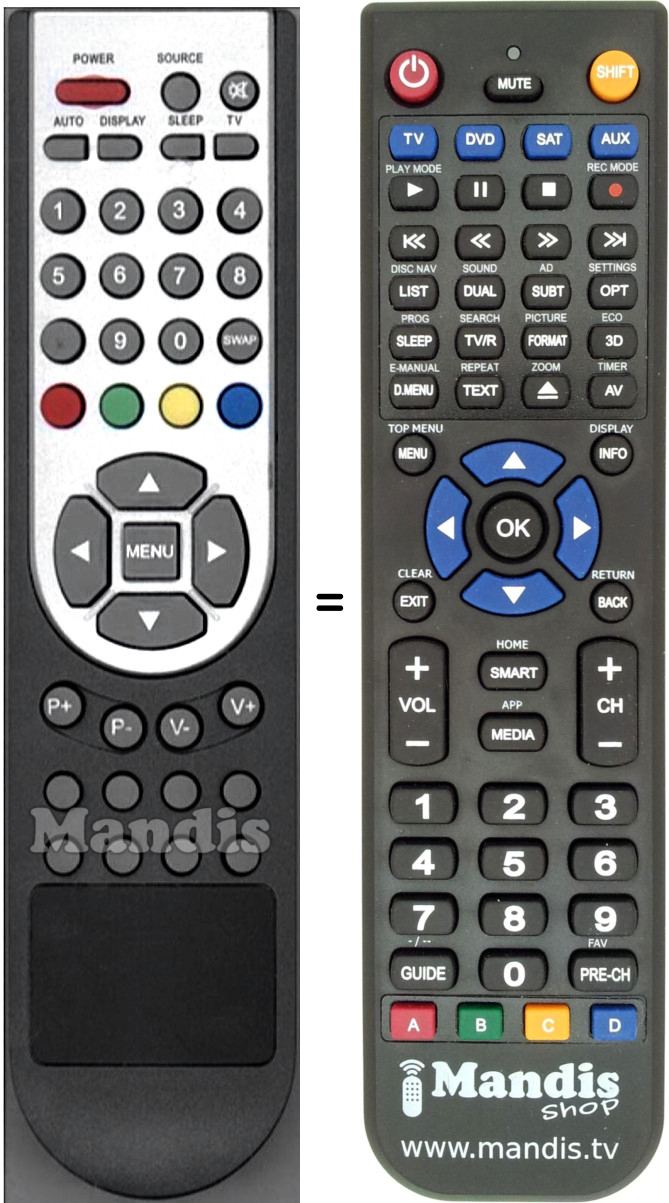 Below, we will show you the correspondence between each button on the original remote control and the button that performs the same function on the replacement remote control. In some cases, you may need to press the SHIFT key before pressing another button to perform certain actions. These additional functions are often not widely used and are included to facilitate understanding of the replacement remote control, or because the original remote control has more buttons than its equivalent.