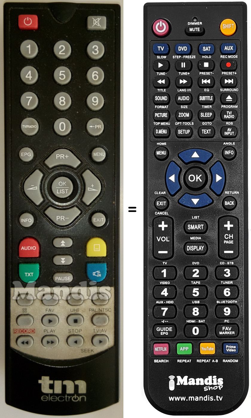 Remote control to replace the original remote TM-TDT 1019 and all its functions.