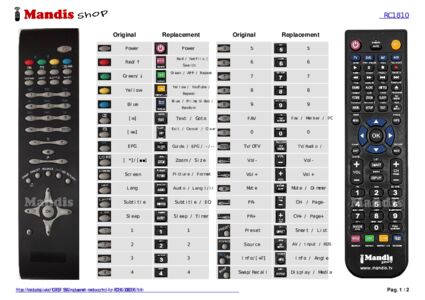A document is included to help you use the new remote control easily, showing the button correspondence.