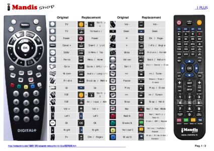 Below, we will show you the correspondence between each button on the original remote control and the button that performs the same function on the replacement remote control. In some cases, you may need to press the SHIFT key before pressing another button to perform certain actions. These additional functions are often not widely used and are included to facilitate understanding of the replacement remote control, or because the original remote control has more buttons than its equivalent.