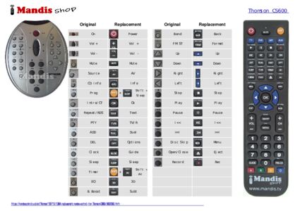 Home > Brands > Remote controls Thomson > Remote control for THOMSON CS600 (56020590)