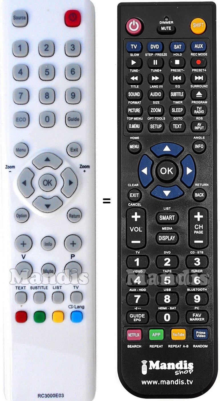 Remote control to replace the original RC3000E03 and all its functions.