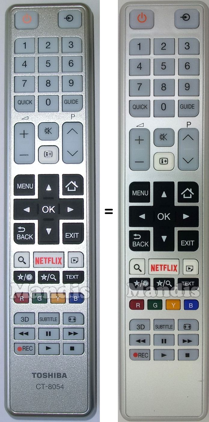 remote control CT-8054 used for televisions for the brand Toshiba.