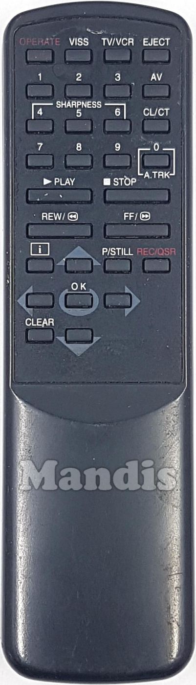 Operate, VISS, Tv/VCR, Eject, AV, 1, 2, 3, 4, 5, 6, 7, 8, 9, 0/A.TRK, CL/CT, Play, Stop, >>/FF, <</REW, [i], P/Still, Rec/QSR, Clear, Up, Down, Right, Left, OK