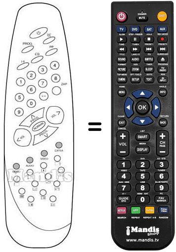 It is not a universal remote but a substitute for the original.